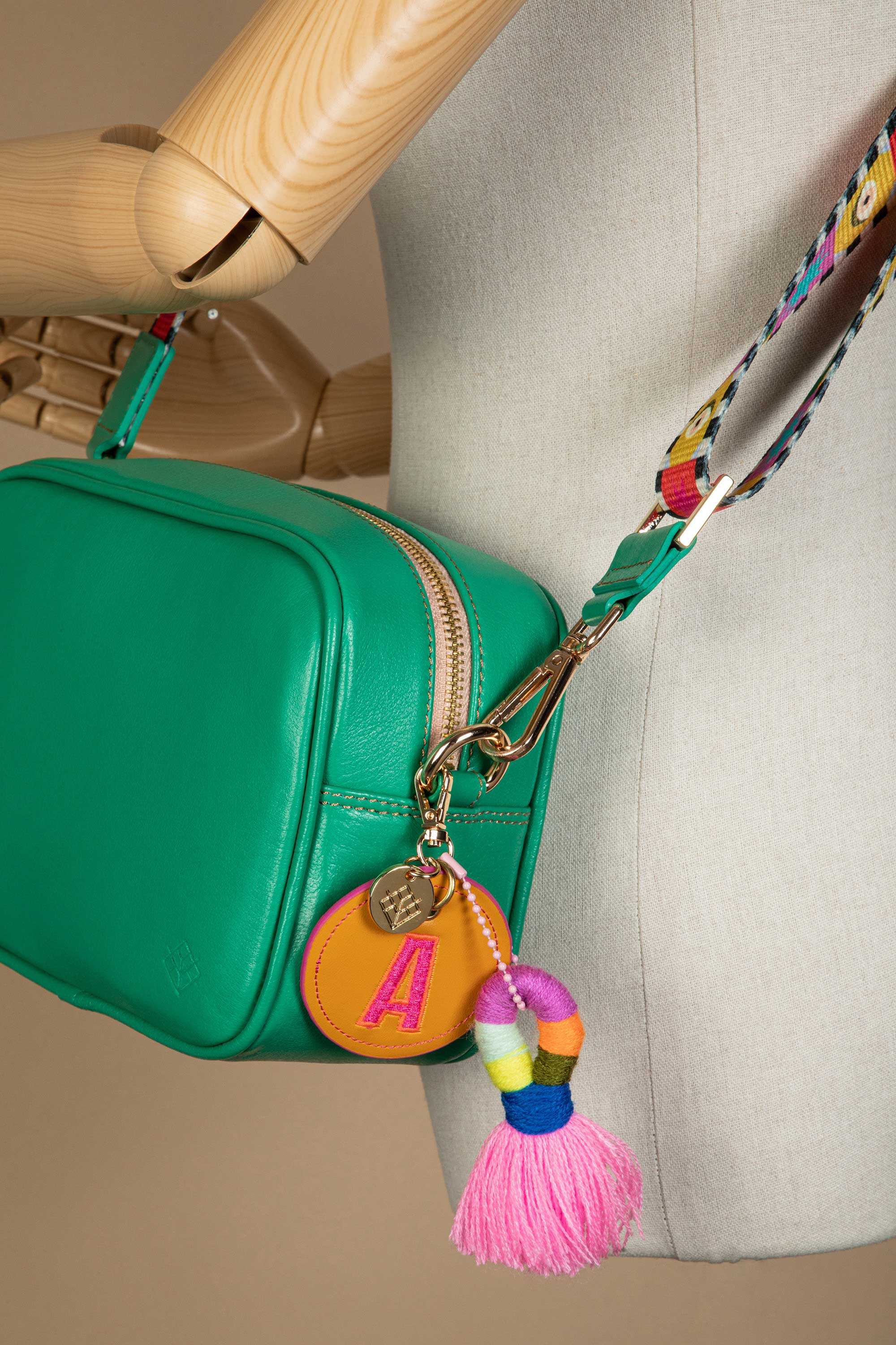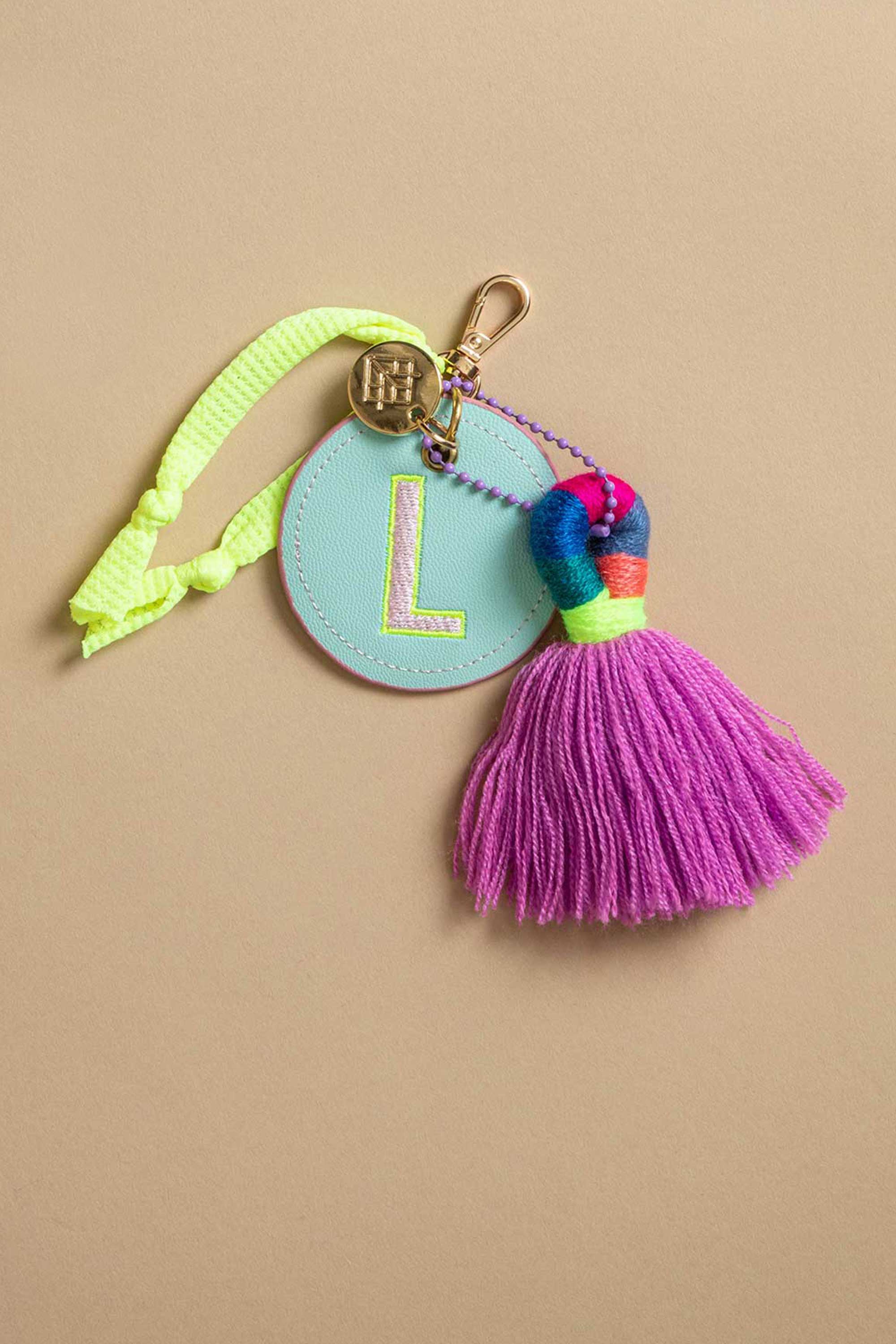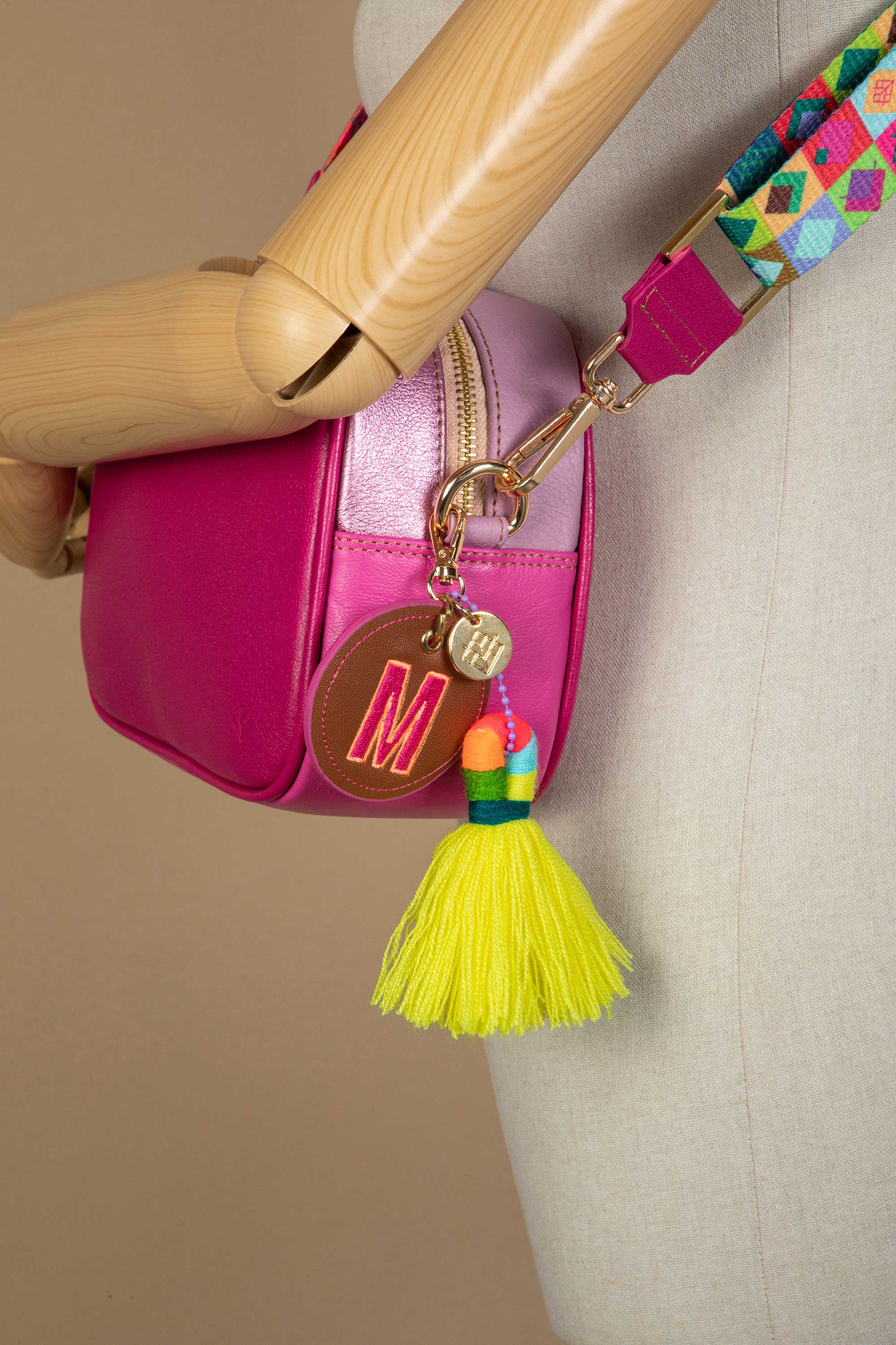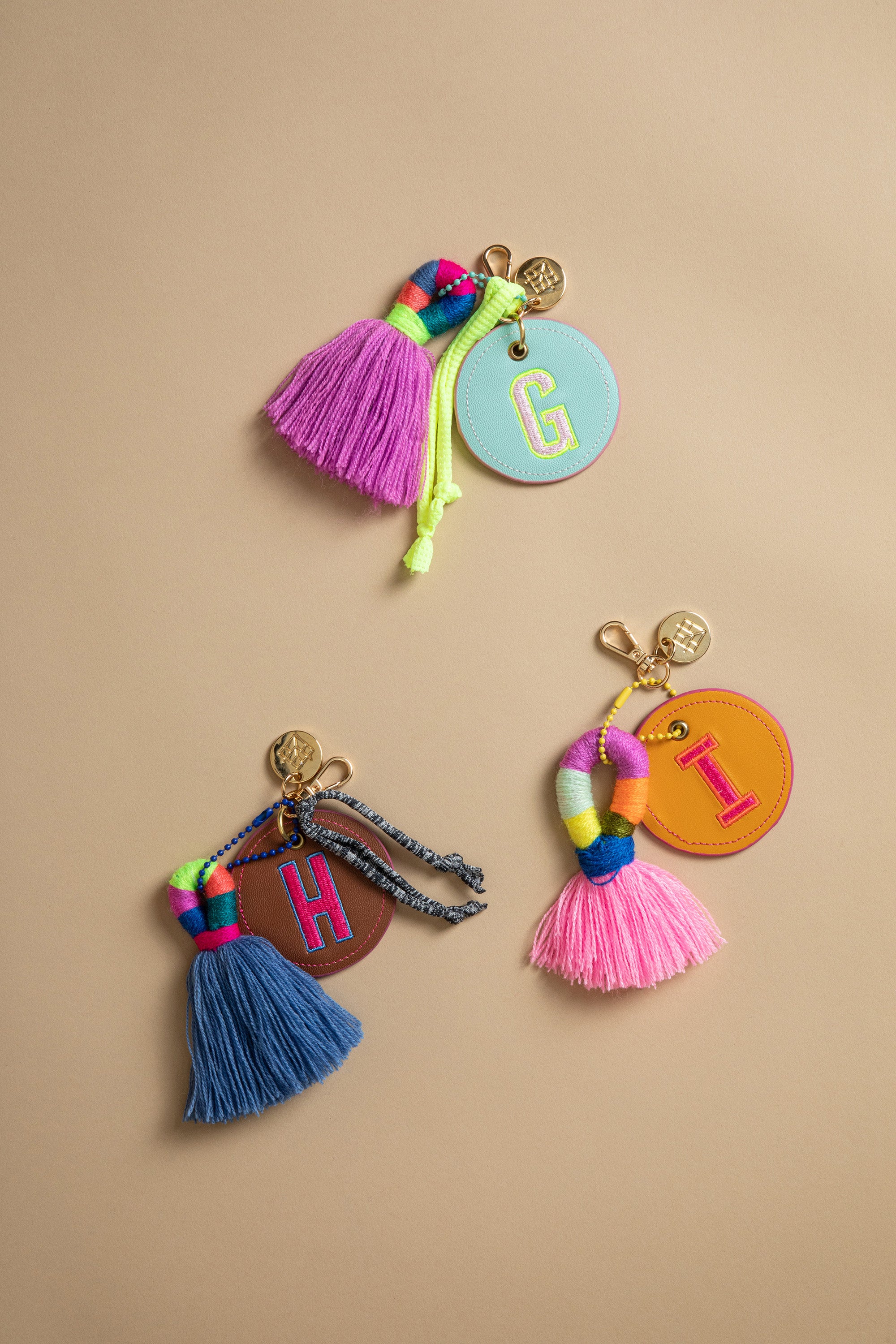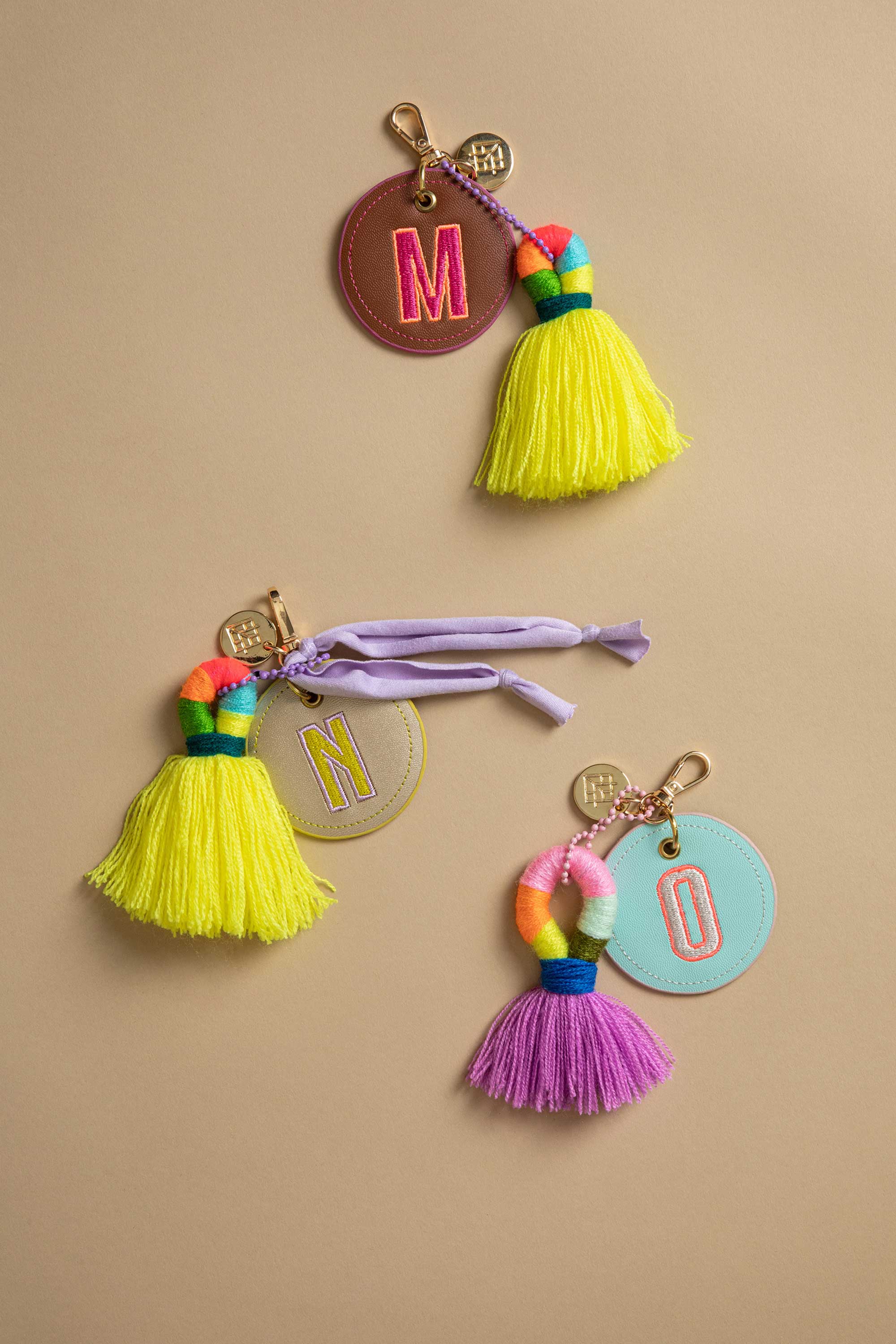 ¡Personaliza tus bolsos de una manera divertida! Este charm es alegre y funcional, con tu inicial bordada y un colorido original que le darán vida a tu bolsa. Disponible en colores vibrantes para darle un toque único a tu estilo.