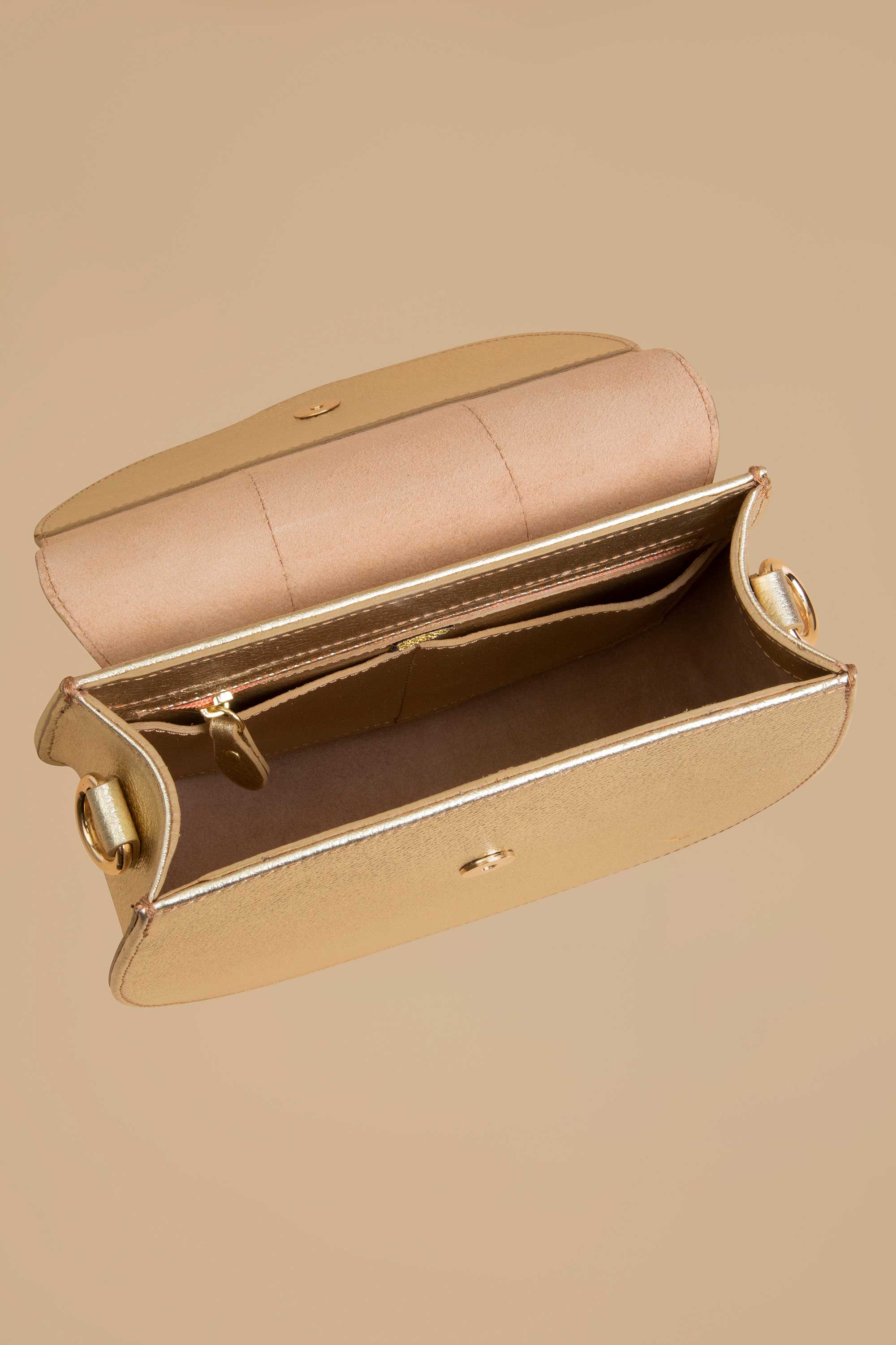 El nuevo Crossbody Aitana Love en piel metálica oro, es la elección perfecta si deseas una bolsa con estilo y multifuncional. Fabricada con piel suave y resistente. Incluye doble correa para usarla en todas sus aventuras. Esta pieza única es sin forro, en un color tinto atemporal que te hará destacar en cualquier ocasión.