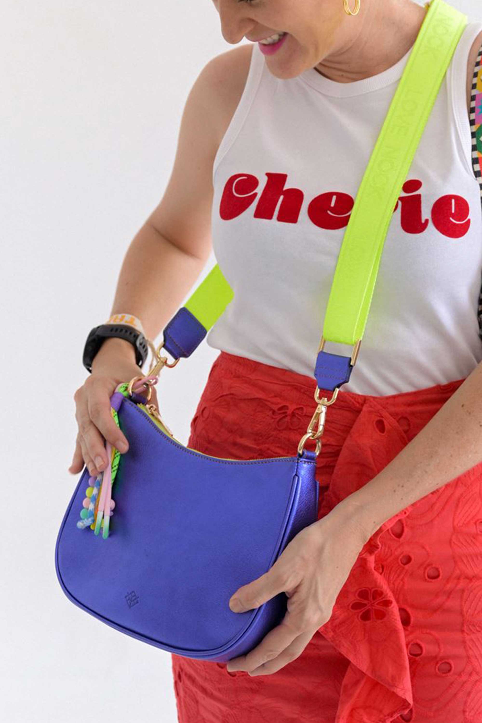 Incluye tu strap largo estampado y también otra correa en piel para llevar al hombro. Puedes intercambiarlas como quieras.