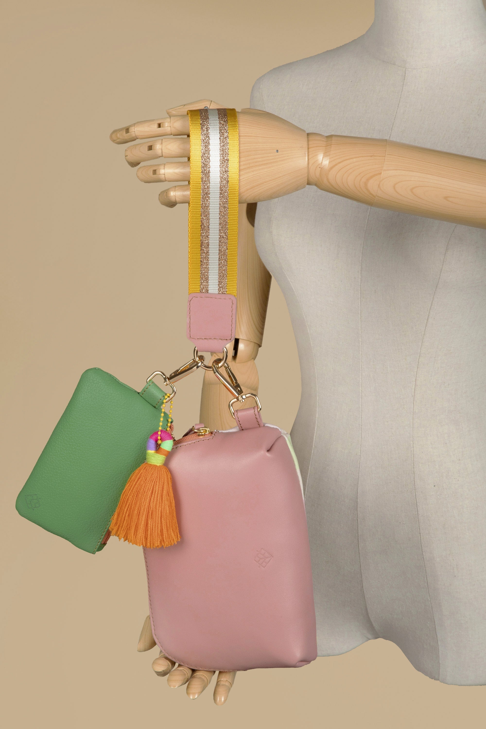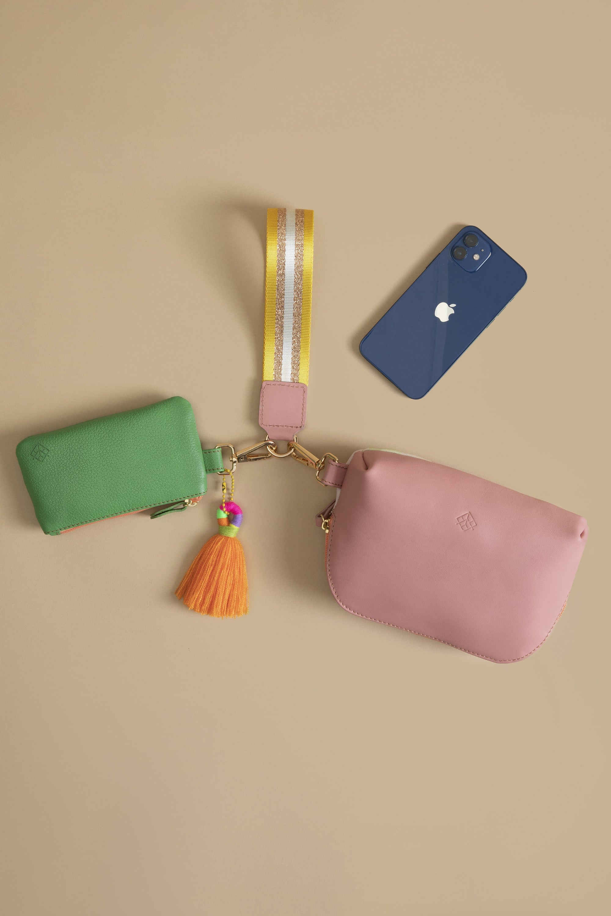 Lleva contigo lo esencial de una forma práctica y con estilo. Nuestra Pulsera Dúo incluye dos cosmetiqueras y una pulsera llavero resistente y colorida, pensada para acompañarte en tu día a día. Podrás llevar tu celular, tarjetas y monedas con total comodidad, mientras añades un toque divertido a tu look.