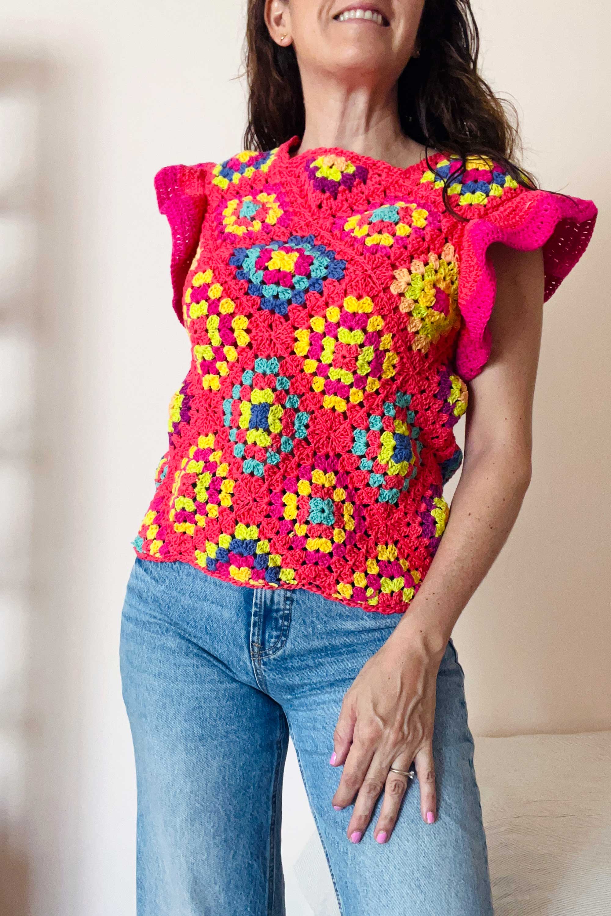 Prenda hecha por chicas de nuestro grupo incluyente y nos encantó el resultado =) Blusa tejida en crochet multicolor. Le da un toque muy especial a cualquier top. Súper combinable y atemporal