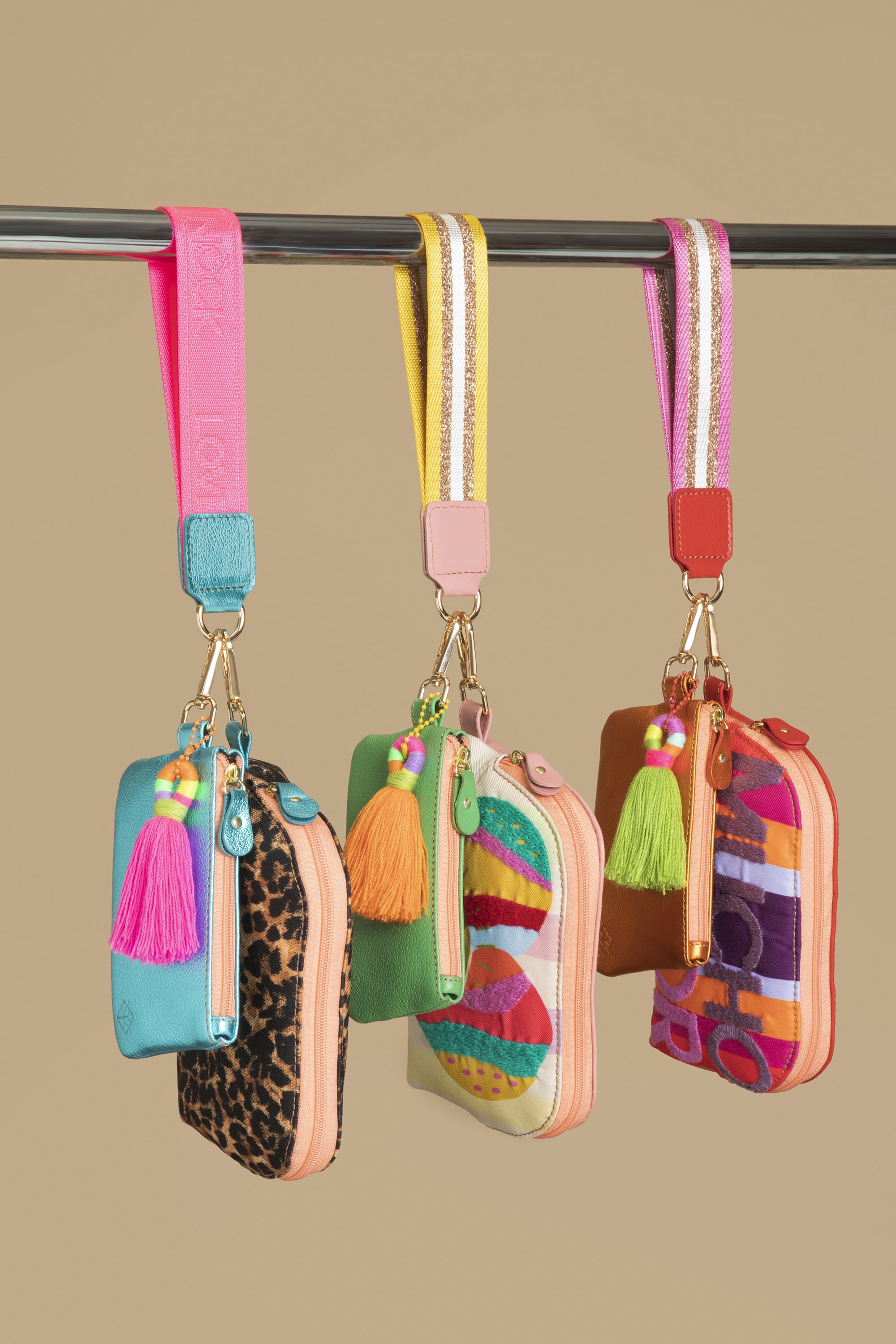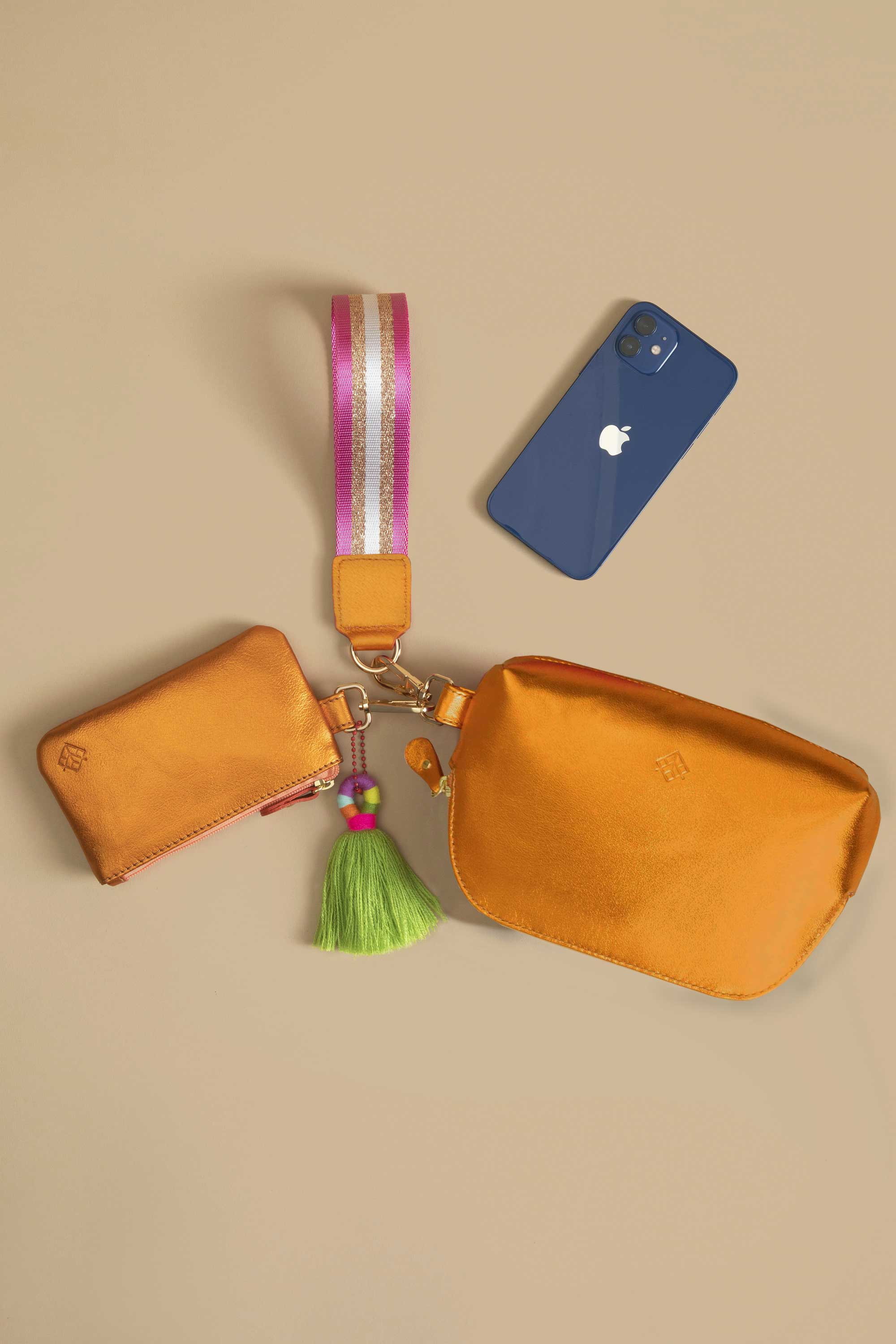 Lleva contigo lo esencial de una forma práctica y con estilo. Nuestra Pulsera Dúo incluye dos cosmetiqueras y una pulsera llavero resistente y colorida, pensada para acompañarte en tu día a día. Podrás llevar tu celular, tarjetas y monedas con total comodidad, mientras añades un toque divertido a tu look.